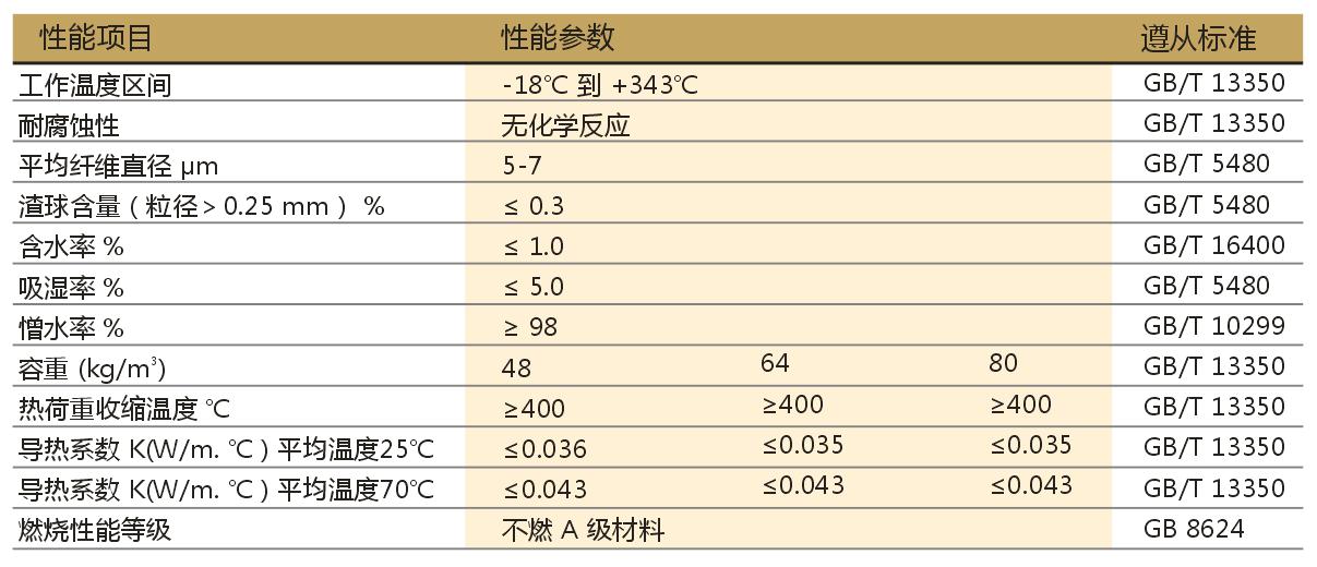 HGT 恒祥福諾斯玻璃棉管性能參數表