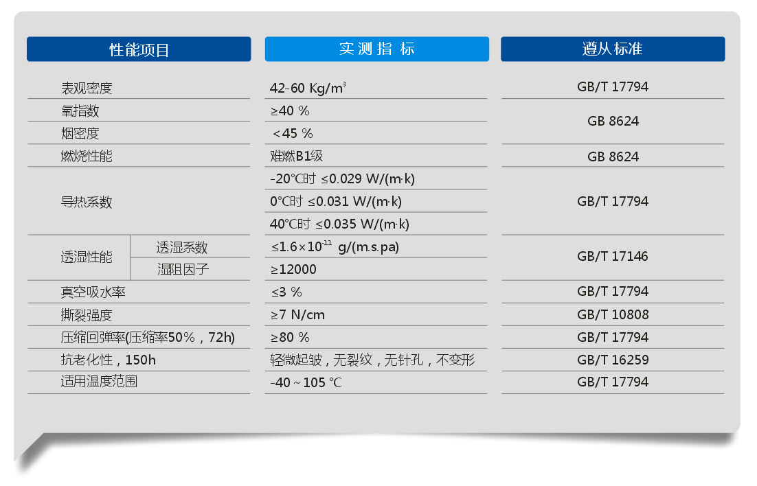 濕阻因子μ≥12000,導(dǎo)熱系數(shù)λ≤0.032w/(m.k),0℃。無纖維粉塵,不含甲醛,不含氯氟烴等破壞臭氧層的工質(zhì);優(yōu)異的防腐性,不易老化產(chǎn)生裂紋。安裝方便簡捷,使用壽命長,適用溫度范圍-50至105℃。廣泛用于HVAC系統(tǒng)高端市場的各種管道及設(shè)備的保溫保冷,充分保證降低冷、熱損失的節(jié)能效果。通過美國FM認(rèn)證及英國 BS 476 Part 6 Class 0級報告。