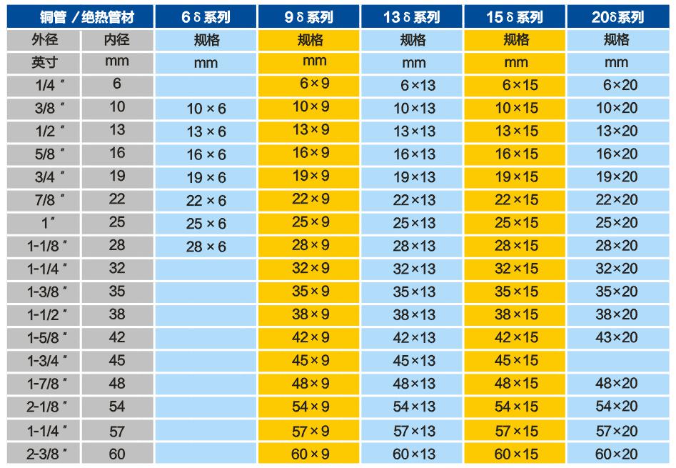 恒祥勃朗斯Class 1級(jí)橡塑保溫管規(guī)格表