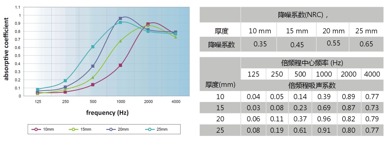 ●相對的高密度和高流阻對聲波提供了有效的屏障作用。